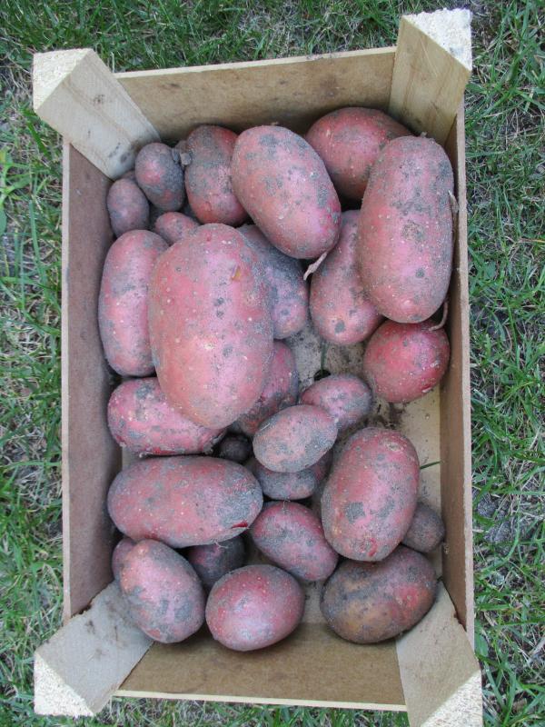 Hier bleibt es bei Kleinernten: 1 Schälchen Brombeeren, 2 Zucchini und ein paar Kartoffeln 'Laura'. Den Rest der Kartoffeln buddel ich vlt am Wochenende aus; oder nächste Woche ... Ach ja, die Tomatenernte hat endlich auch hier begonnen :D - Sunrise Bumblebee, Black Cherry, Reisetomate und Snowberry durften gestern schon auf den Tisch.