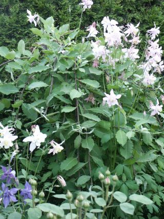 Ueberrascht haben mich die wild ausgesaeten Akeleien in diesem Jahr. So eine Bienenwabenfoermige Bluete hatte ich bisher noch nicht gesehen. ist wohl eine Hybride aus den zweifarbigen und normalen Blauvioletten.
