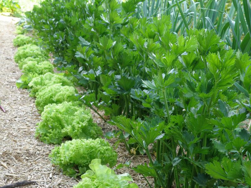 und hier Salat eng neben/unter Sellerie - die Reihen sind in Nord/Südausrichtung, so dass ein nicht unerheblicher Zeitraum mit Beschattung entsteht.
