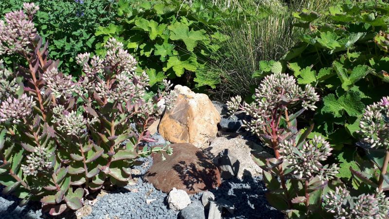 Ein niedliches kleines Sedum...wer weiß den Namen? Höhe etwa 25cm mit rosa Schirmblüte, ansonsten wie die Großen. ???