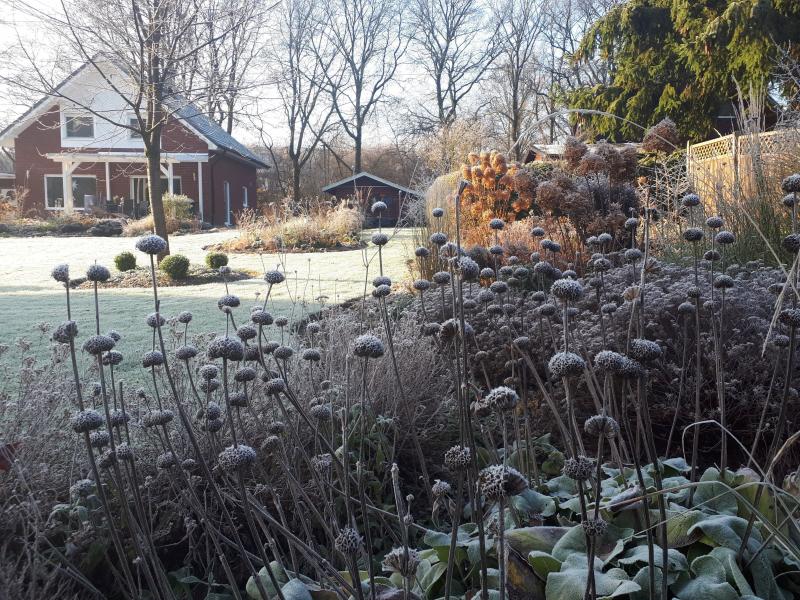 Floris Du hast Recht, das 2. Foto ist von Anfang Juni vorigen Jahres. Aber schau mal beim 1. Bild wie wenig Blütenstängel sie dieses Jahr hatte. Sie hat ja kaum geblüht. Und wo bleibt der viel zitierte Winteraspekt wenn Du nicht erwartest, daß die Stängel aufrecht stehen bleiben? So etwa sieht das sonst im Herbst aus. :-\
