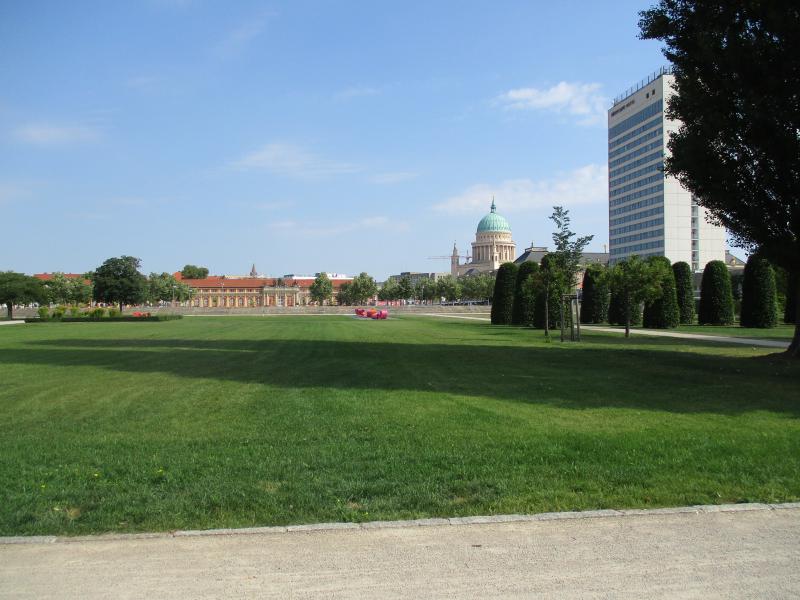 Blick zurück nach Pdm - hier im Grünen sind an der ganzen Havel entlang Badestellen.