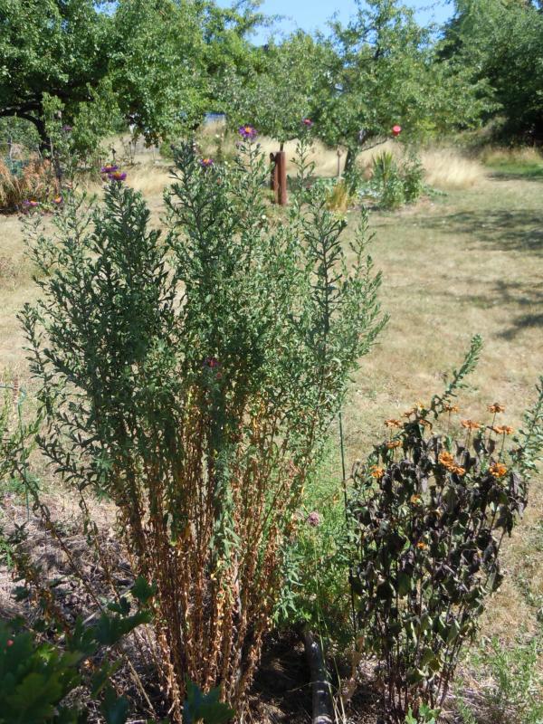 Tja, Sandboden, Kiesbeet und Co. kann ich ihnen hier ohne große Bodenvorbereitung leider nicht bieten, ich brauche Trockenkünstler, die mit schwerem Lehmboden zurechtkommen. Ich staune z. B. immer wieder, was die Kanadischen Goldruten abkönnen. Trotz Dürre zwei Meter hoch und sattgrün, das macht denen so schnell keiner nach...