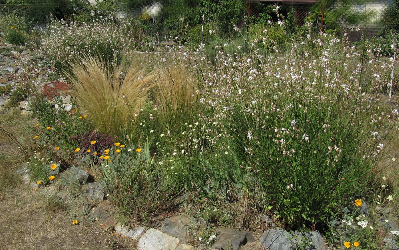 In die Reihe der Unkaputtbaren gehört definitiv Gaura. :D In dem Beet wird nur eine Agastache ab und zu etwas gegossen (nicht zu sehen im Bild, da sie derzeit rückwärts wächst).