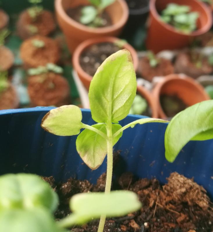 Ich habe nun dem kranken Basilikum ein winziges bischen mehr Dünger gegeben als den anderen.