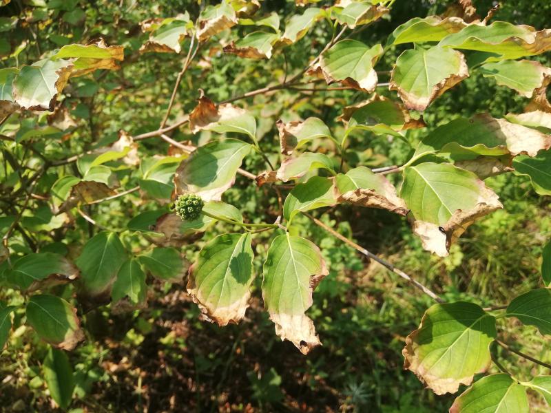 Meine drei Cornus kousa sehen ebenfalls vergleichbar aus. Aber sie blühen im nächsten Jahr sicher wieder - wie in den vorhergehenden Jahren! Eine Pflanze im Halbschatten zeigt sich völlig unbeeindruckt.
