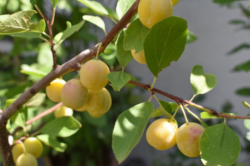 Ist es so etwas,was du auch hast Röschen?Sie schmecken besser als Mirabellen und sind auch sehr süß und aromatisch.Hier das Blattwerk.