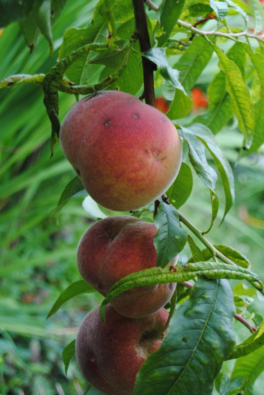 Am Sonntag habe ich je ein halbes Kilo Zwetschgen "Baya Aurelia" und Biricoccolo "Nostrano", sowie eine handvoll Pfirsiche "Amsden" und Maulbeeren geerntet. Auch je eine Probierfrucht von den Biricoccolo "Vesuviano" und "Gigante di Budrio". Bei meinem Spilling, war jemand anderes schneller als ich und das WE davor waren sie noch nicht reif.