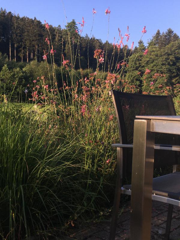 Dieses Jahr schießt offenbar vieles über's Ziel hinaus, teilweise mehr, als mir lieb ist. Die Aster 'Guido en Gezelle' sollte eigentlich bis 1,50 m groß werden. ::)