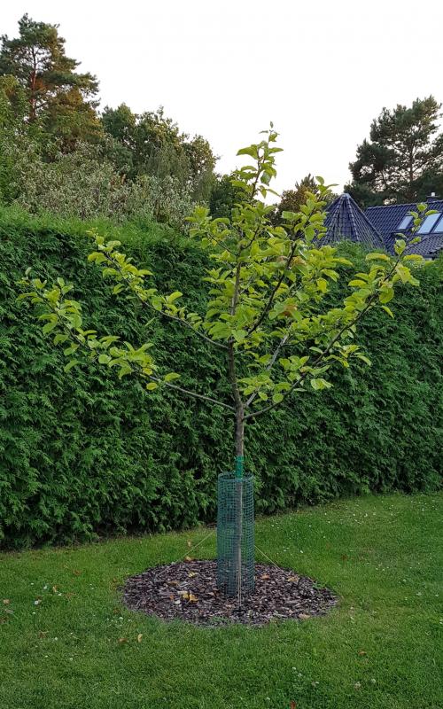 hat ja einen Grund warum sie keinen Hochstamm gekauft hat, der Baum steht nicht auf der Streuobstwiese, sondern im Hausgarten.