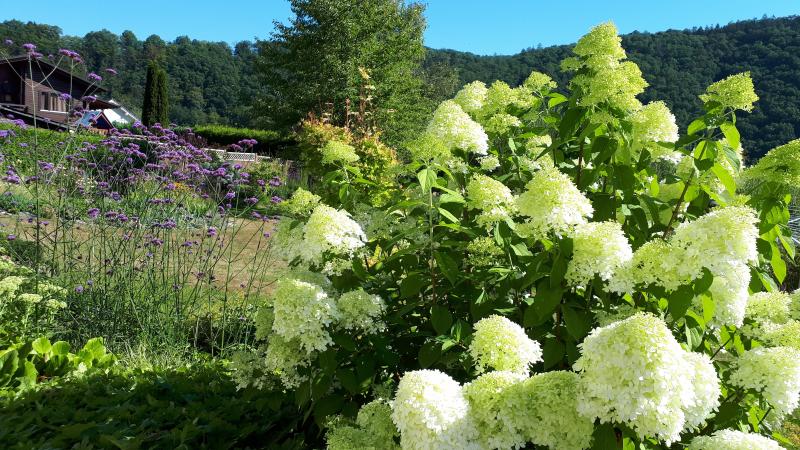 Einige von Euch kennen vielleicht schon das Beet mit meiner aufgeasteten Felsenbirne ? Im vorderen Bereich ja schön unterpflanzt mit Hosta 'Summer Breeze ', Bergenia und Geranium etc. Ich habe - blöderweise direkt vor dem Dürreeinbruch- die im oberen Beetbereich vorhandene Alchemilla mollis und das Geranium nodosum unter dem Baum zwecks Neuaustrieb zurückgeschnitten. Das sieht jetzt aus, wie Ihr auf den folgenden Fotos sehen könnt. :o Mir kam nun die Idee, die veralteten Bodendecker zu entfernen und zumindest eine von meinen großen Hosta dort unterzubringen. Die Lichtverhältnisse lassen das inzwischen zu, denke ich. Schaut doch erstmal... wenn's Euch interessiert. Hier die bekannte, ganz gelungene Situation im vorderen Beetbereich :D