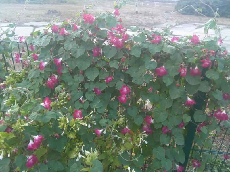 Bei mir vermischen sich die selbst aufgegangenen Prunkwinden mit der "Wucherpassiflora". Das mutiert alles langsam zum Unkraut.