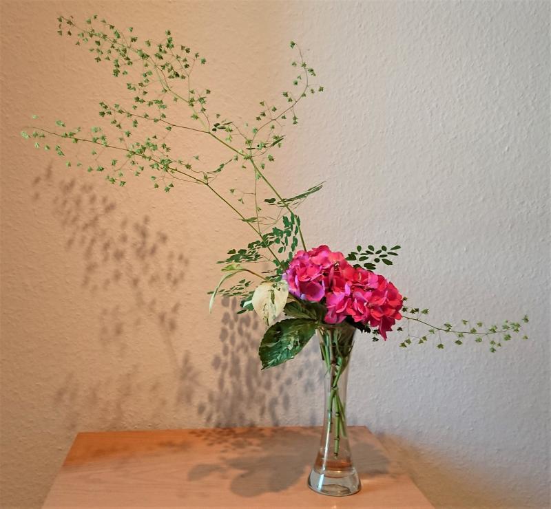 Den Wildwuchs habe ich größtenteils entfernt, es gab noch einen überflüssigen Zweig und der steht jetzt in der Vase.