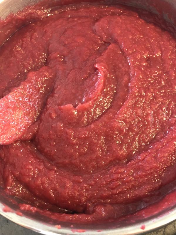Bild habe ich keins...nur vom gerade gekochten Apfelmus aus den rotfleischigen Äpfeln.