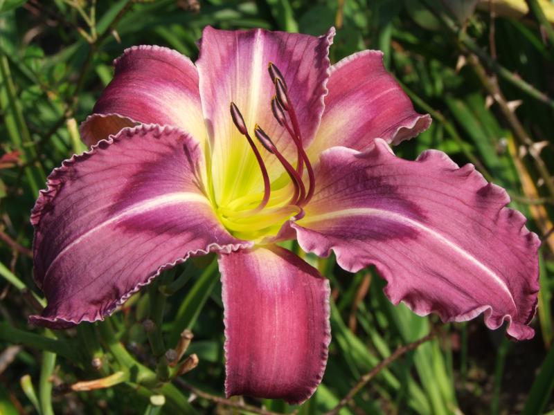 Mean as a Snake (Shooter, 2004) wurde im Laufe der Saison auch schon einmal von - ich glaube - Nova gezeigt, da war hier an dieser Sorte von Blüten noch weit und breit nichts zu sehen. Bei mir ist sie immer eine der letzten Sorten, was insofern verwunderlich ist, als dass sie eigentlich als "early bloomer" registriert ist, allerdings auch mit Rebloom-Potenzial. Vielleicht fällt also bei mir nur regelmäßig das Early Blooming aus und wird durchs Reblooming als einzige Blühphase ersetzt?