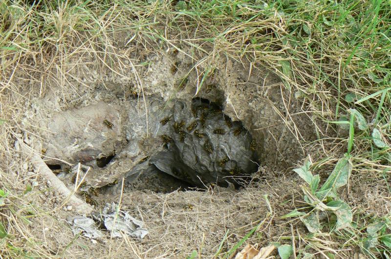 Das ist sicher ein schon älterer Mäusegang, vielleicht mit größerer Nisthöhle, die sich die Wespenkönigin zum Nestbau ausgesucht hat.