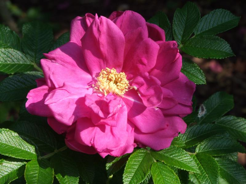 'Errki Rautio' Rosa rugosa Hybride mit süßem Duft,in Schüben blühend und immer glänzendes ,strunzgrünes Laub.Sehr traurig,dass Pirjo Rautio so früh verstorben ist.