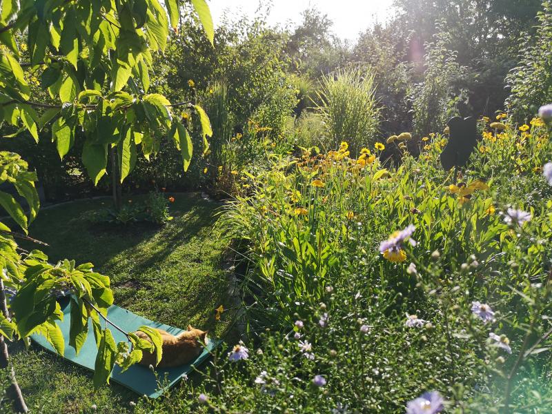 Als ich neulich morgens frei hatte, ging ich natürlich in den Garten. Da ich sehr müde war und die Sonne herrlich schien, hab ich gleich die Isomatte ausgerollt und 10 Sekunden später lag Lotti am Fußende mit drauf.