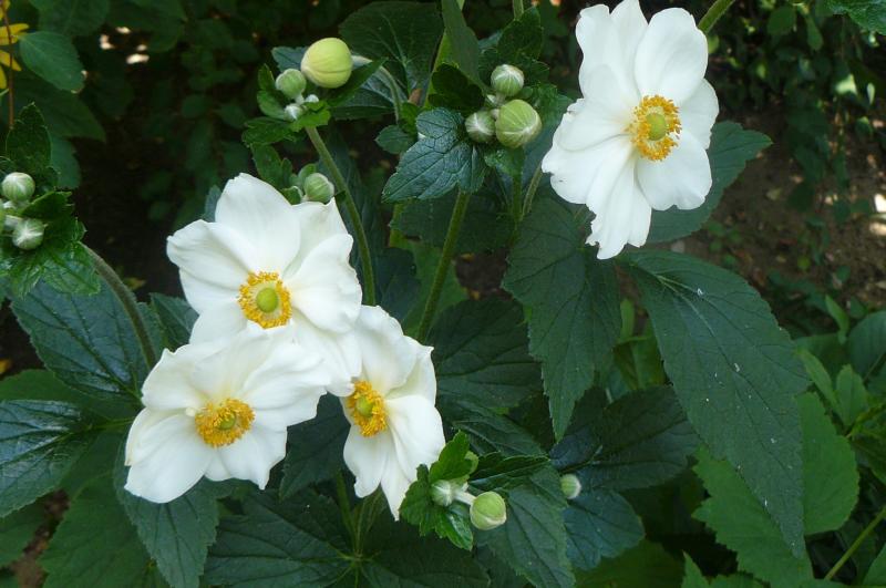 Die weiße Herbstanemone Coupe d`Argent hat schon schöne Blüten . :D