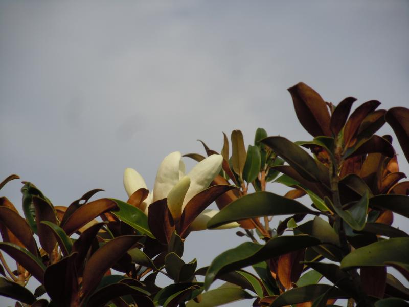Meine M.grandiflora"Alta" blüht immer noch. Leider in 3 m Höhe. Rangezoomt...