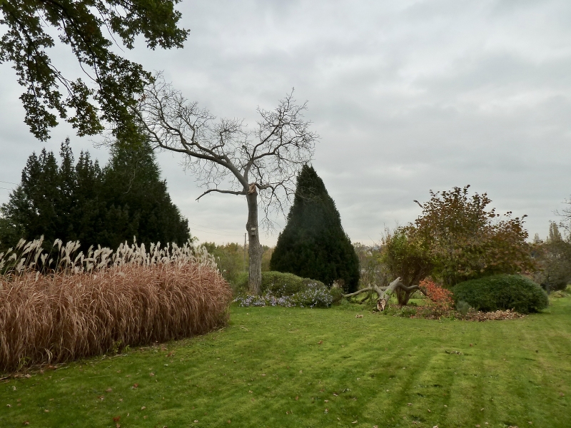 Gartensituationen verändern sich. Der weit nach rechts auskragende Ast war morsch geworden und drohte, abzubrechen. Deshalb habe ich ihn vorsichtig zurückgenommen. Im Herbst 2016 sah der Baum dann so aus: