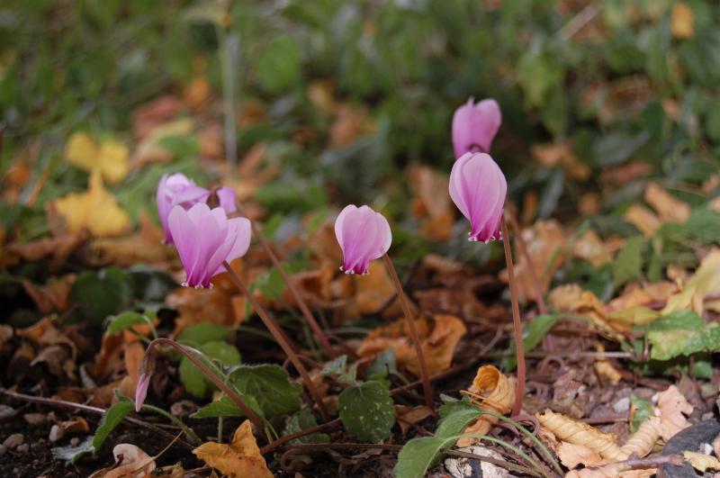 Aber die Cyclamen kommen überall jetzt aus dem Boden.