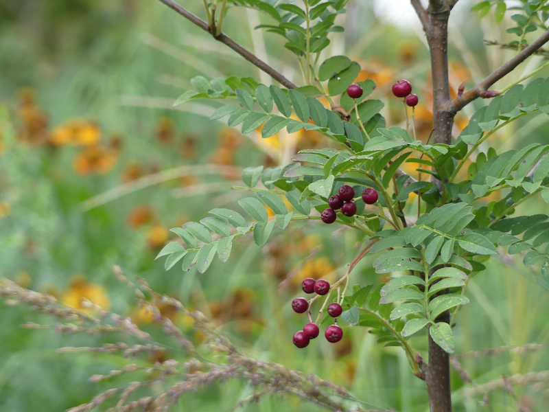 Sorbus vilmorinii 'Pink Charme' mit Früchten. Wobei ich angesichts der Farbe der Beeren leise Zweifel hege, ob es tatsächlich die Sorte ist.
