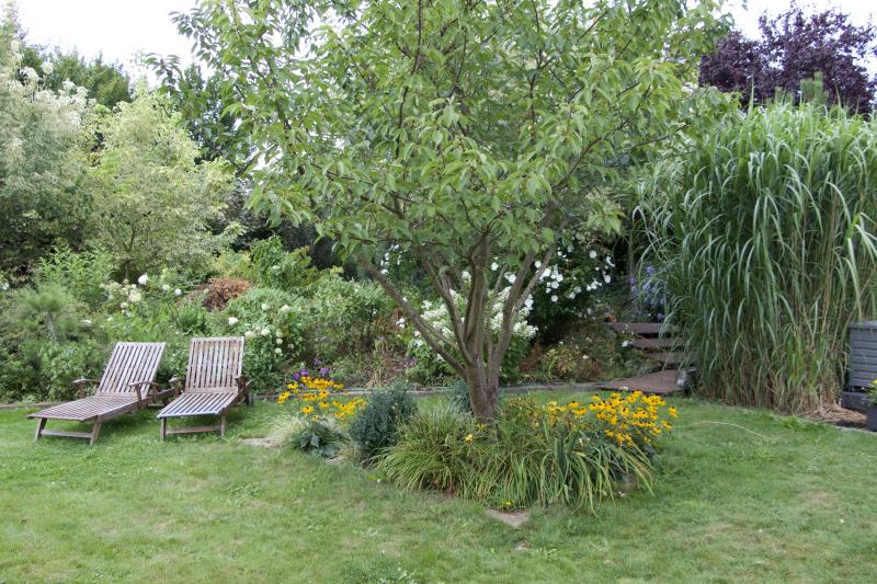 Hier hat es heute auch geregnet - ca 5 Tropfen pro qm, im Regenmesser nicht nachweisbar ::). Die Regengebiete sind allesamt nördlich vorbeigezogen - Kiel dürfte da besser dran gewesen sein. Dank meines (Trinkwasser-) Brunnens, der bitte tunlichst nicht versiegen sollte ( :-\), sieht es im Garten noch ganz akzeptabel aus, aber die Koppel hat Steppencharakter angenommen. Die Apfelbäume werfen Früchte ab wie verrückt, aber da hängt so viel dran, dass es mich nicht stört. Ich kann jeden Tag einen 20L-Eimer aufsammeln.