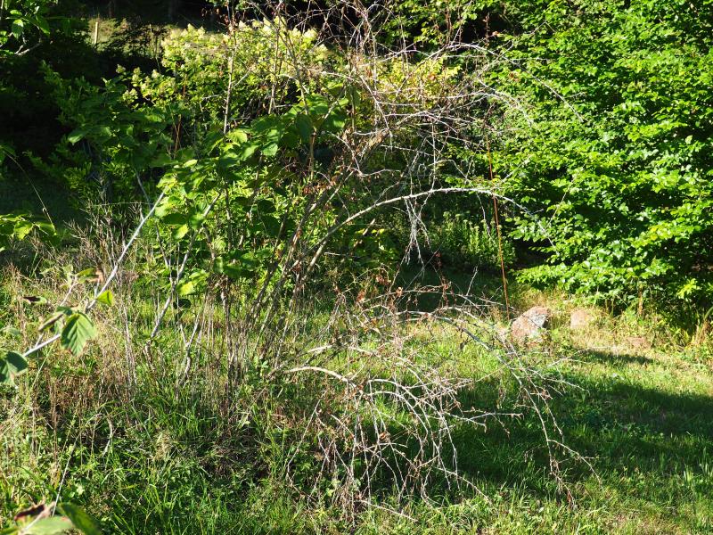 Was man auf dem Bild noch sieht, Brombeeren. Die kommen super bei andauernder Trockenheit. Demnächst rücke ich denen dann mit dem kleinen Root Slayer zu Leibe.