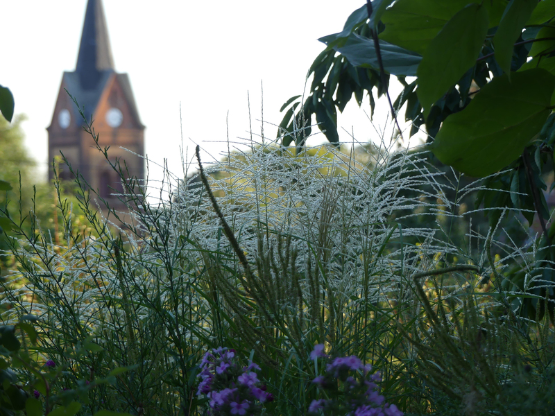 Das ist ein Sämling, der sich in einem anderen Beet ziemlich breit gemacht hatte. Hier in diese Pflanzung ist sie wohl nur geraten, weil beim Vermehren von Aster d. 'Rosenwichtel' ein Trieb mit in einen Topf geraten ist. Nun passt sie tatsächlich ganz gut, wird sich aber bald auf den Weg machen, das Beet zu erobern. :-\