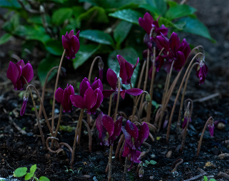 War grad draussen (im Regen) und habe das Cyclamen von der Distel befreit. Die Knospen darunter werden es mir danken.