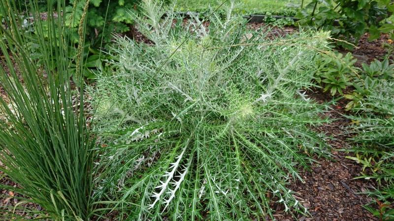 Jetzt wurde nach der Distel gefragt. Hier ist sie nun. Leider habe ich weiter keinen Namen. Sie ist ein Mitbringsel aus einem Offenen Garten. Das ist die Pflanze rechts daneben.