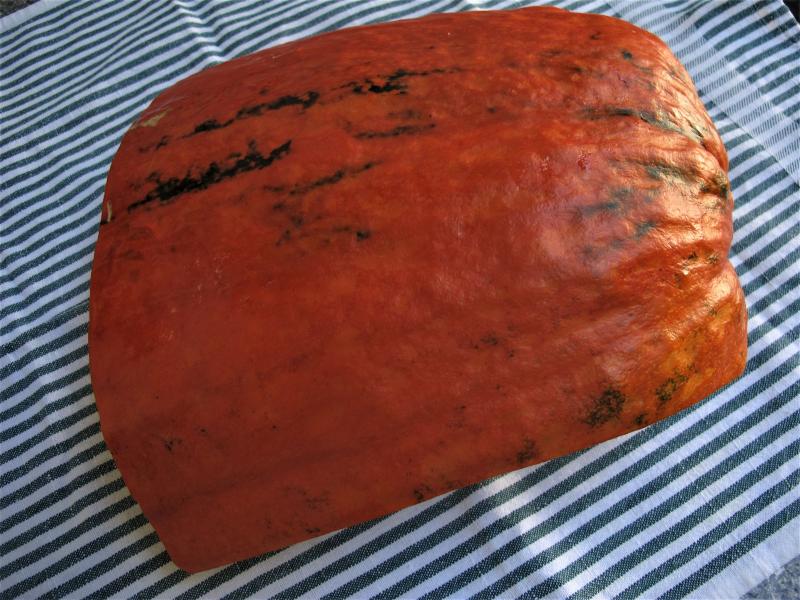 Eine Bestimmungsfrage an die Experten - hoffentlich geht das hier: kennt jemand diesen Kürbis? Wird sehr groß (ich glaube, über 10 kg, ich bekomme immer um diese Zeit Stücke davon geschenkt), das Fleisch ist sehr saftig und hat einen feinen, nicht sehr ausgeprägten Geschmack.