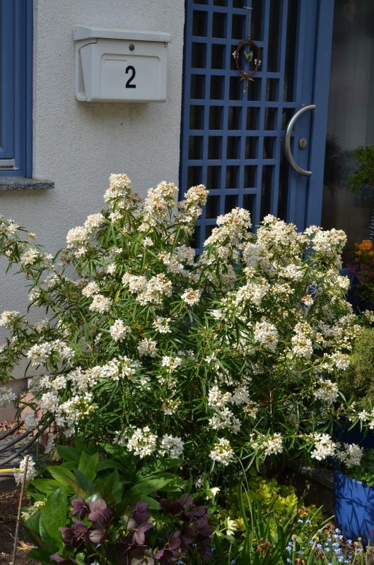 @enaira: Danke für die vielen Fotos; die Choisya am Eingang sieht wirklich herrlich aus! Dein Steckling, den Du einmal mitgebracht hast, macht sich ebenfalls sehr gut, den müsste ich dringend mal wieder einkürzen, damit er sich schön verzweigt.