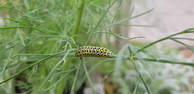 Einen Schwalbenschwanz sehe ich leider sehr selten. Diesmal hat der Anbau von Dill geklappt. Ich habe ein kleines Kräuterhochbeet angelegt. Im Freiland klappte der Anbau von Dill so gut wie nie...
