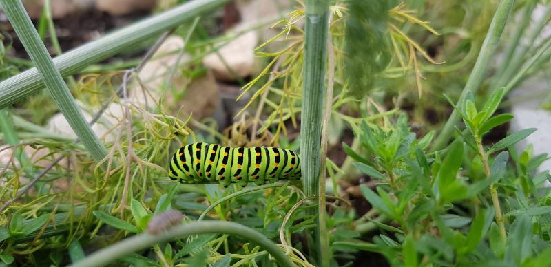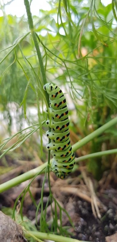 Einen Schwalbenschwanz sehe ich leider sehr selten. Diesmal hat der Anbau von Dill geklappt. Ich habe ein kleines Kräuterhochbeet angelegt. Im Freiland klappte der Anbau von Dill so gut wie nie...