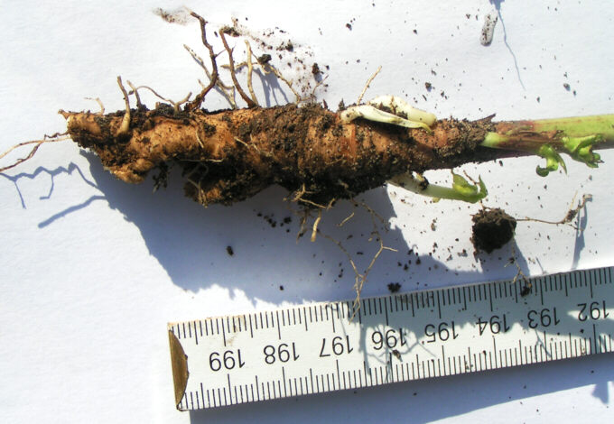 Ich vermute, mit dem Brotmesser soll die Wurzel zerschnitten werden, sie soll nämlich auch durch Wurzelteilung vermehrbar sein. Mir ist das leider noch nicht gelungen :-\Ich habs aufgegeben, denn sie wächst bei mir zwar nicht da, wo ich es gerne hätte, aber immerhin da, wo es ihr gefällt.Das reicht mir