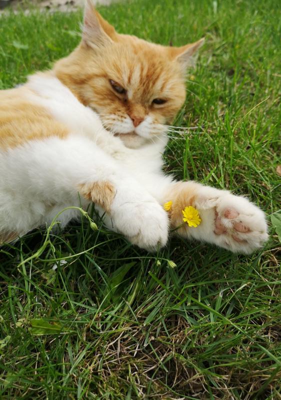 Dankeschön für die Glückwünsche, ich habe sie ausgerichtet. Und dieses supersüße Lottilein mit dem Blümchen ... auch wenn der alte Herr etwas gleichgültig guckt, das Katzenpersonal ist umso hingerissener