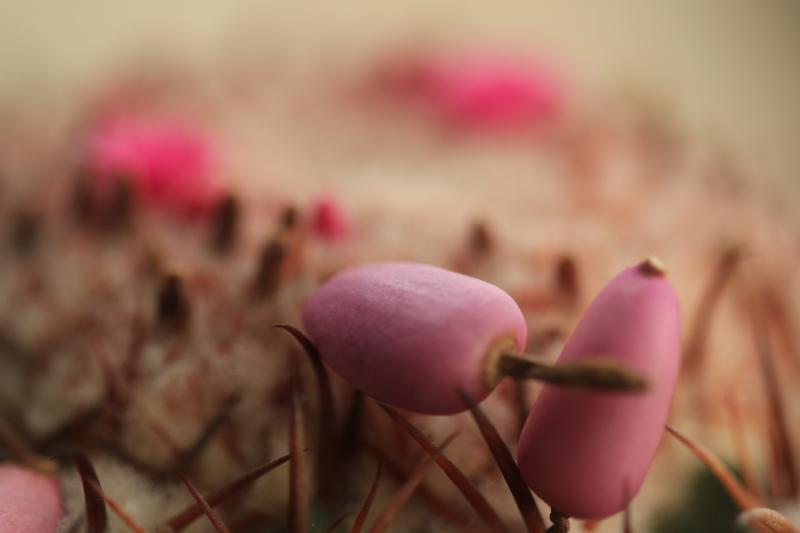 Die Früchte werden aus der Cephalium ausgeschoben.
