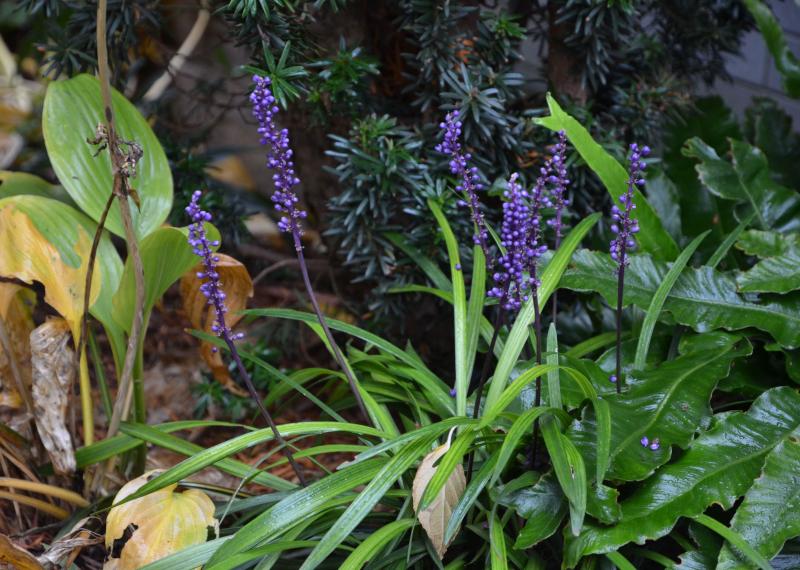 Ich habe für diese Liriope eigentlich keinen geeigneten Platz, weswegen sie bisher nie geblüht hat (Lichtmangel). Nur durch den starken Rückschnitt der Mahonie bekam sie dieses Jahr genug Licht und auch etwas Sonne. Aber die Mahonie treibt schon wieder sehr kräftig durch, so dass nächstes Jahr die Blüte wieder wegfallen wird. Dann ist sie bei mir wieder reiner, aber robuster Blattschmuck.