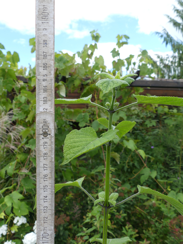 In diesem Jahr habe ich auch eine Pflanze bekommen, deren Blüten das echte Blau von 'Enigma' haben. Das könnte, den Blättern und den schwärzlichen Stängelpartien nach, 'Black and Bloom' sein. Der muss erst mal in die Gänge kommen.