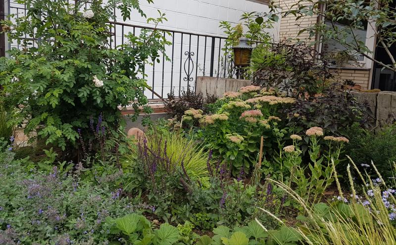 Die Durststrecke im "Beet Nr.1" (dem ersten Beet, das ich den Schneebeeren abgerungen habe) ist vorbei. Dabei zeigt sich, dass die doofe wilde, sich überall aussäende Fetthenne in der richtigen Umgebung ganz nett sein kann.