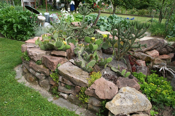 Im Beet sind auch noch Feldsteine die die Ebenen abgrenzen. Hinten könnte ich schon ein paar Granitblöcke als Wärmespeicher hoch stehen lassen. Guter Tipp !