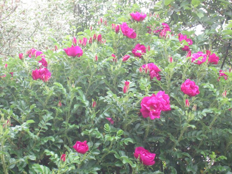 Gesund und duftend ist die Rugosahybride 'Wild Eagle' von Ruf. Beliebt bei Hummeln und Bienen, sie bildet einen dichten runden Busch. :D