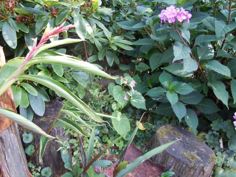 Hier in diesem Beet wächst Zingiber mioga üppiger. Boehmeria platanifolia hat sich erholt.
