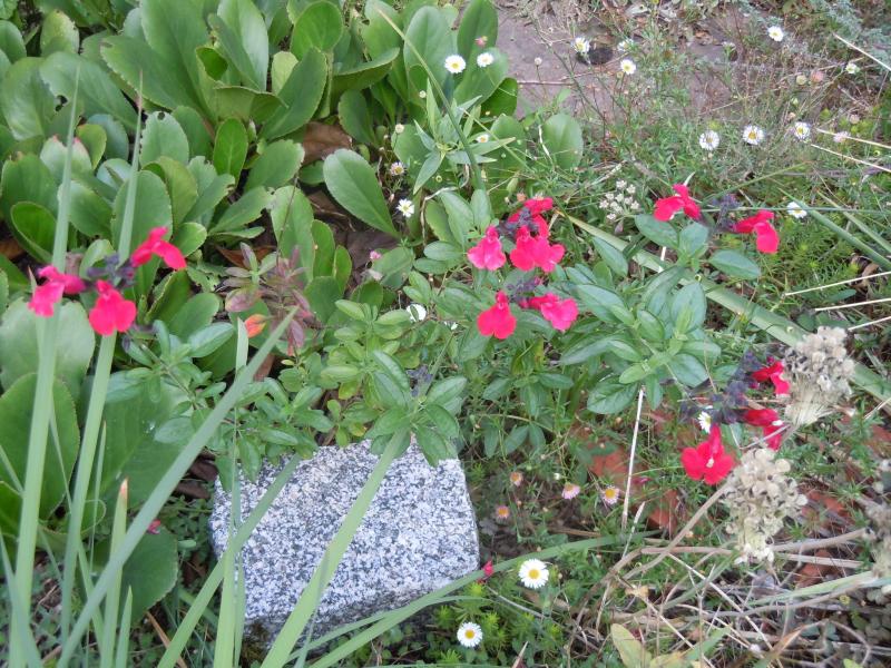 Bisher hatte ich mit Salvia greggi, Salvia microphylla oder wie auch immer nie besonders Glück. Eine "Hot Lips" kommt zwar jedes Jahr wieder, allerdings nur eintriebig und eher schmächtig. Diese Pflanze ist viel buschiger, obwohl sie auch noch klein ist. Das Rot ist sehr samtig, nicht so rosastichig wie auf dem Foto.