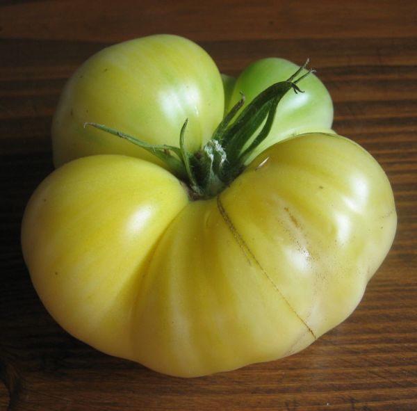Vorige Tage habe ich die erste weiße Tomate geerntet, White Princess oder White Queen noch immer fraglich.Von oben sah sie wunderschön aus.