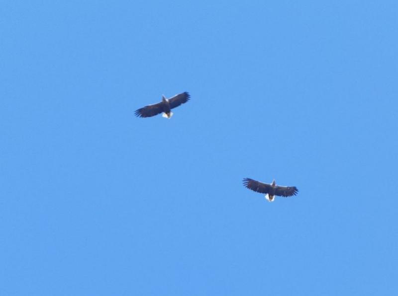 Am Himmel über dem Zweitgarten ist derzeit fast die ganze Greifvogelschar beim Anlernen der Jungen zu beobachten. Nicht immer gelingt es, Fotos zu machen. Die Seeadler sind schon vor ein paar Tagen im Familienverband über mir gekreist. Die Jungen schienen richtig aufgeregt. Gestern zogen sie wieder ihre Kreise, alles sah etwas "professioneller" aus. :D