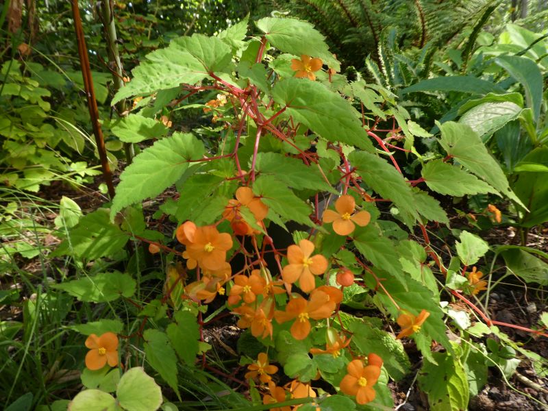 Begonia sutherlandii blüht schon länger, ein bisschen versteckt hinter den Klodeckeln Arisaema fargesii. Jetzt habe ich den Pott vorgeholt und in besseres Licht gerückt.