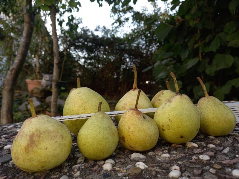 Hallo, ich habe heuer eine kleine Streuobstwiese gegönnt. Dort stehen drei Birnenbäume. Die Sorte des größten Baums würde ich nun gerne mit euch bestimmen. Wir haben heuer hier ein Birnenjahr. Dieser große Birnenbaum ist über 60 Jahre alt. Momentan fallen die ersten Birnen runter. Vor dem Hintergrund, dass wir hier in einer raueren Gegend leben, würde die Reife bei manchen Purlern 2, 3 Wochen früher sein. Hier ein Bild von den ersten Birnen. Bilder von heute.